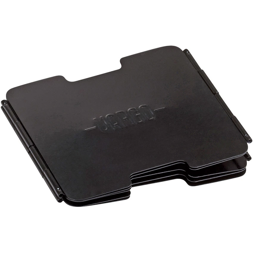 Measures 16 1/2″ x 3 1/4″ expanded. One piece, fold flat design. Cut outs for proper ventilation. Light load pot support capacity. Aluminum construction. Hang packaged. Color: Black.