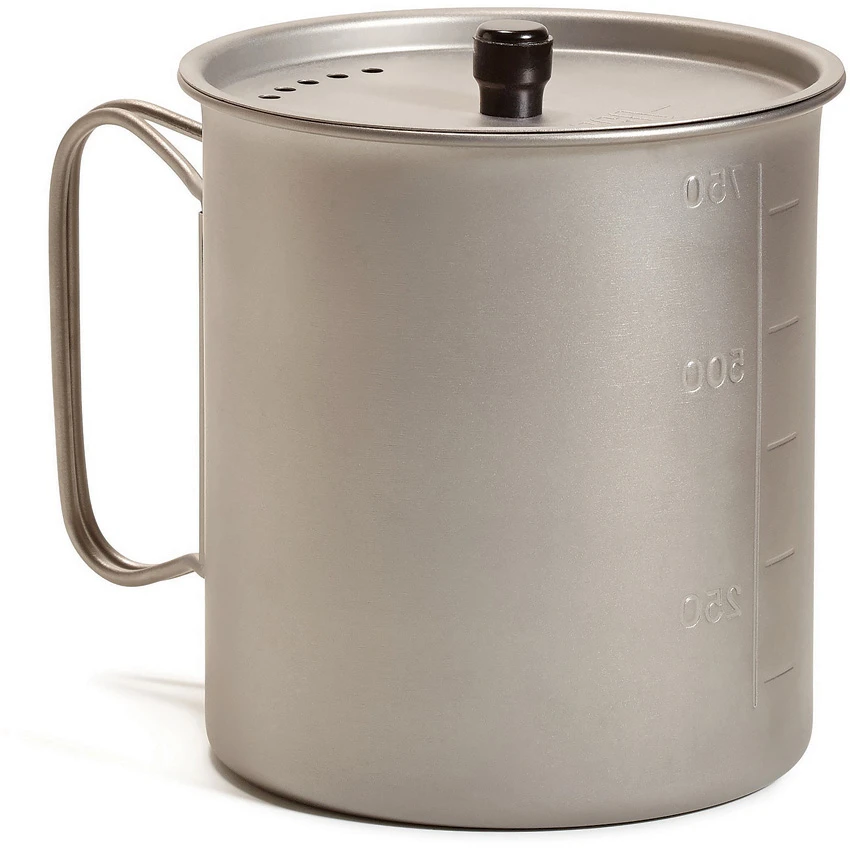 Weight: 4.8oz. 750 ml capacity. Measures 4.5″ high x 4.2″ deep. Strainer lid with an easy-to-grip heat-resistant knob to prevents burns. Attached foldaway handles for cooking and packing ease. Large enough to cook single entree meals, yet small and compact enough to enjoy an early morning cup of coffee. 32 oz. Water bottle fits inside to make packing easier. Nylon mesh storage bag included. Titanium construction.