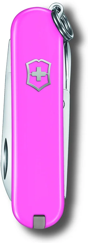 2.5″ (6.35cm) closed. ABS handle. Tools include: File l Keyring l Scissors l Screwdriver tip l Small blade l Toothpick l Tweezers. Color: Cherry Blossom. Boxed. For more information about selling Victorinox items, click here.
