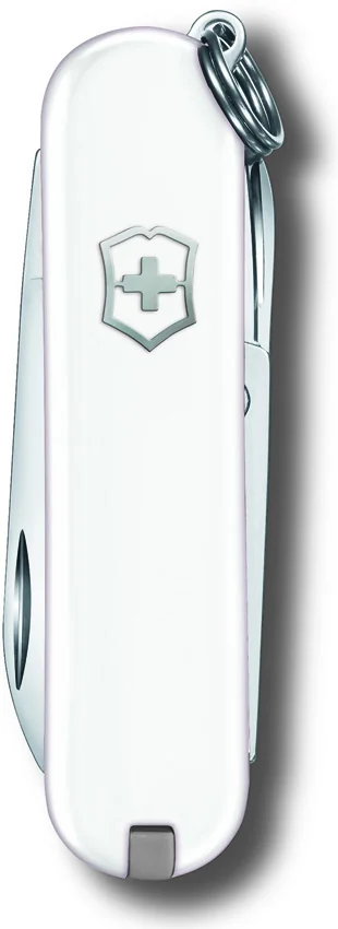 2.5″ (6.35cm) closed. ABS handle. Tools include: File l Keyring l Scissors l Screwdriver tip l Small blade l Standard ruler l Toothpick. Color: Falling Snow. Boxed. For more information about selling Victorinox items, click here.