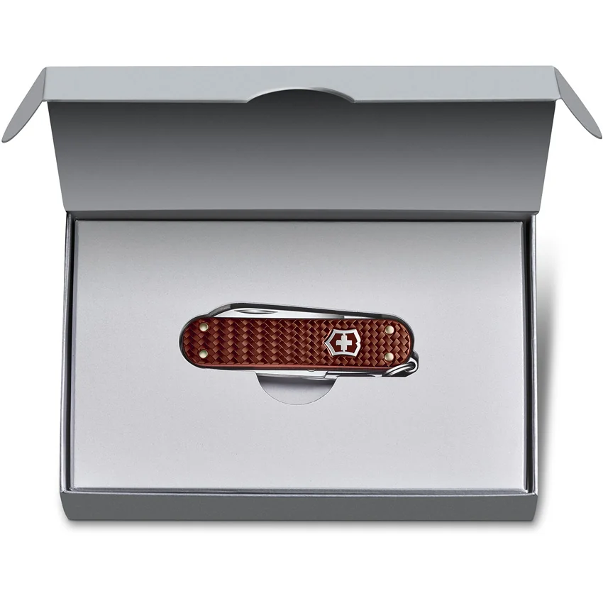 2.5″ (6.35cm) closed. Alox handle. Tools include: Small blade l Toothpick l Tweezers l Scissors l File l Keyring. Color: Hazel brown woven. Boxed. For more information about selling Victorinox items, click here.