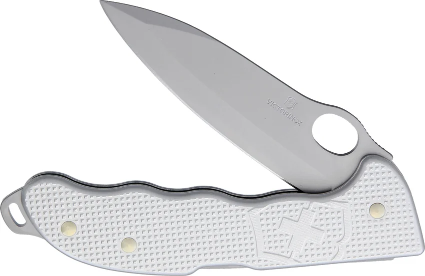 5.38″ (13.67cm) closed. 4″ (10.16cm) blade. Silver finger grooved Alox handle. Lanyard hole. Thumb pull. Money clip. Gray braided paracord lanyard. Boxed. For more information about selling Victorinox items, click here.