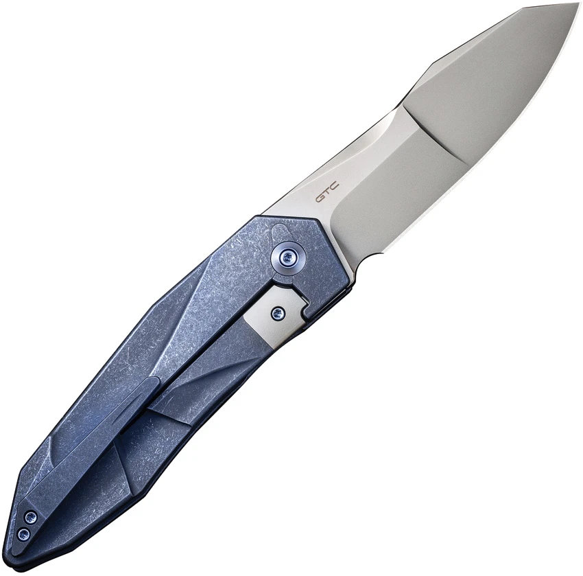 5.13″ (13.03cm) closed. 3.88″ (9.86cm) bead blast finish CPM-20CV stainless blade. Blue stonewash finish titanium handle. Pocket clip. Black nylon zippered storage case. Boxed.