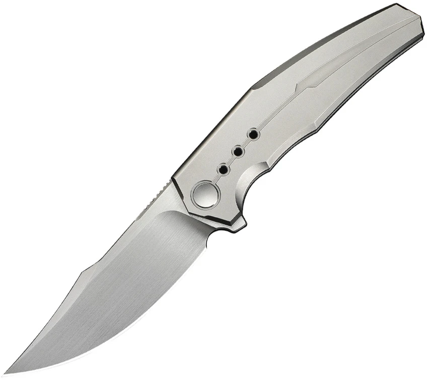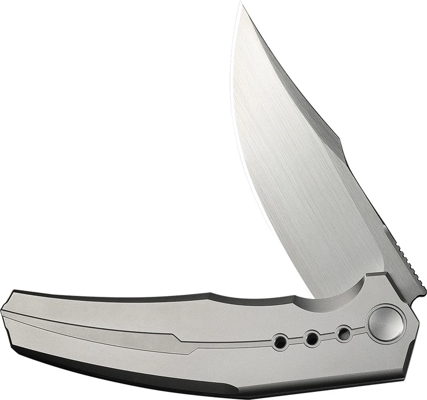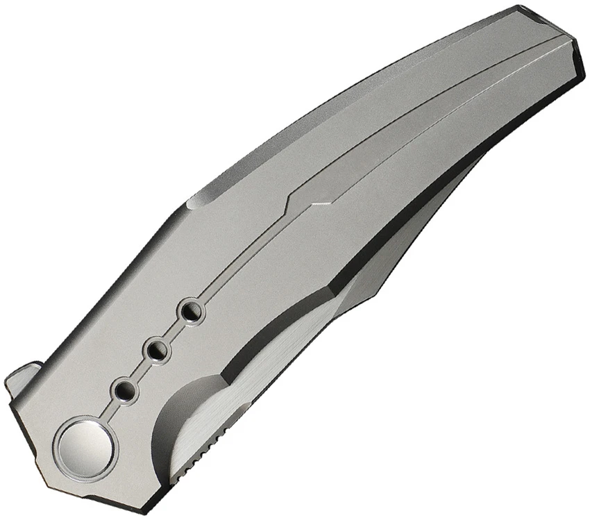 4.75″ (12.07cm) closed. 3.75″ (9.53cm) satin finish Bohler M390 stainless clip point blade. Satin finish titanium handle. Extended tang. Pocket clip. Black nylon zippered storage case. Boxed.