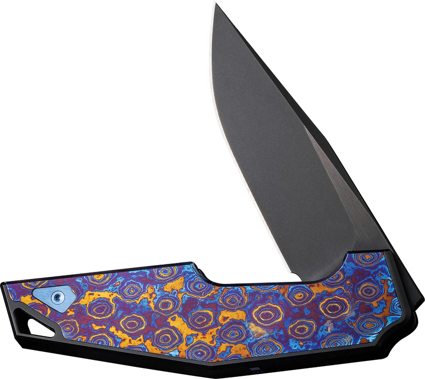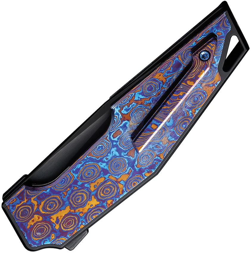 4.5″ (11.43cm) closed. 3.5″ (8.89cm) black brushed finish CPM-20CV stainless blade. Black titanium handle with Timascus inlay. Extended tang. Lanyard hole. Pocket clip. Includes extra left carry Timascus pocket clip and titanium insert. Black nylon zippered storage case. Boxed. No 3rd Party Sales (must be sold from your store or your web site, not a third party site such as Amazon, eBay, etc)