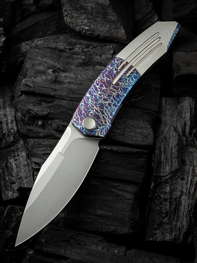 WE Knife Co. Sine Wave Liner Lock Knife Flamed/Satin Ti (3.9″ Polish/BB) Prices Online