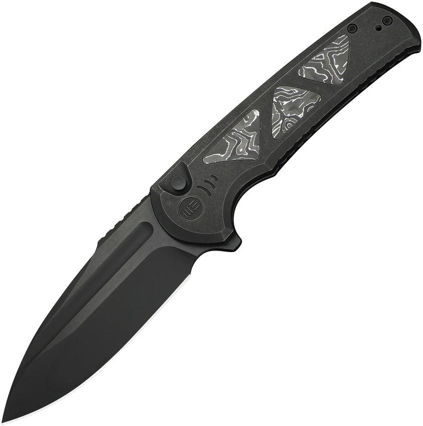 WE Knife Co. Sylox Button Lock Knife Black Ti + Aluminum Foil CF (3.8″ Black) Prices Online