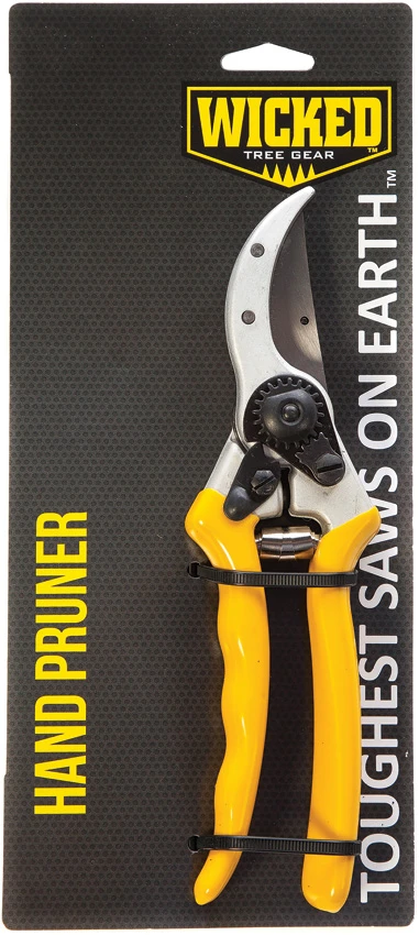 8.25″ (20.96cm) overall. 2.5″ (6.35cm) blade. Locking mechanism with pivot bolt. Replaceable cutting blade. Yellow rubber coated aluminum handles. Hang packaged.