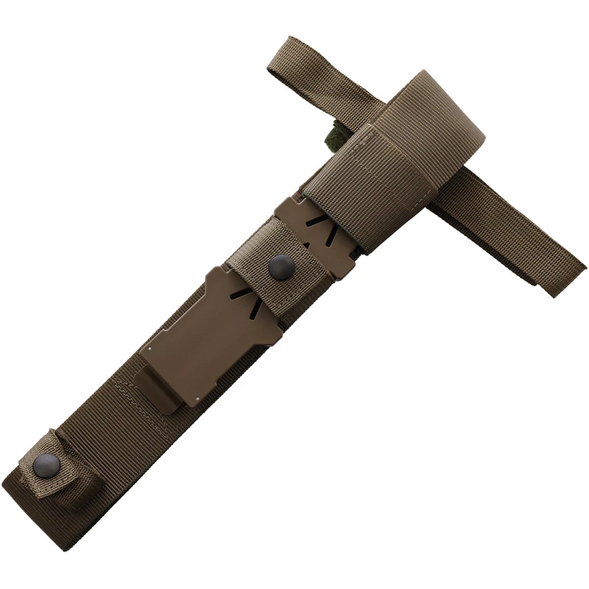 11.63″” (29.54cm) overall. 6.88″” (17.48cm) brushed finish 4116 stainless blade. Black Tactipren handle. Stainless guard and pommel. Glass breaker. Sheath features barbed wire cutter and leg straps. Coyote tan polymer belt sheath. Boxed.