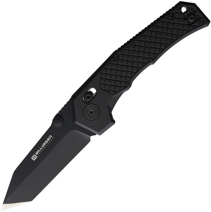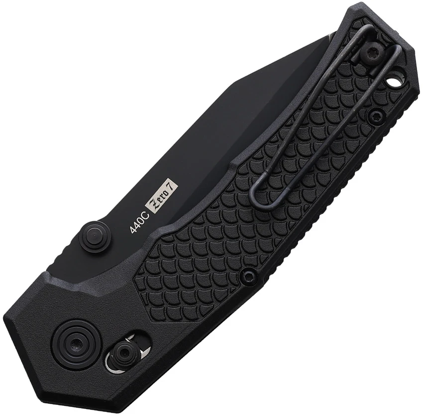 4.75″ (12.07cm) closed. 3.5″ (8.89cm) black stonewash finish 440C stainless tanto blade. Black sculpted polymer handle. Thumb stud. Lanyard hole. Pocket clip. Boxed.