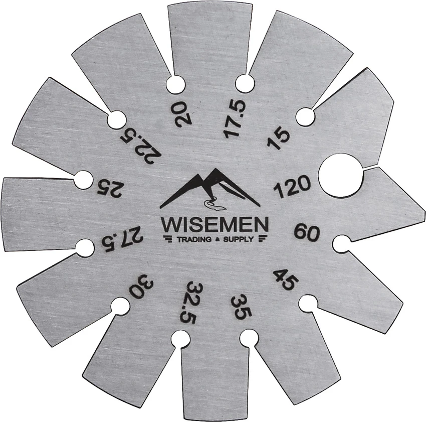 2.75″ diameter. Features 12 common angles from 15 degrees to 120 degrees (15, 17.5, 20, 22.5, 25, 27.5, 30, 32.5, 35, 45, 60, 120). Stainless construction. Bulk packed.