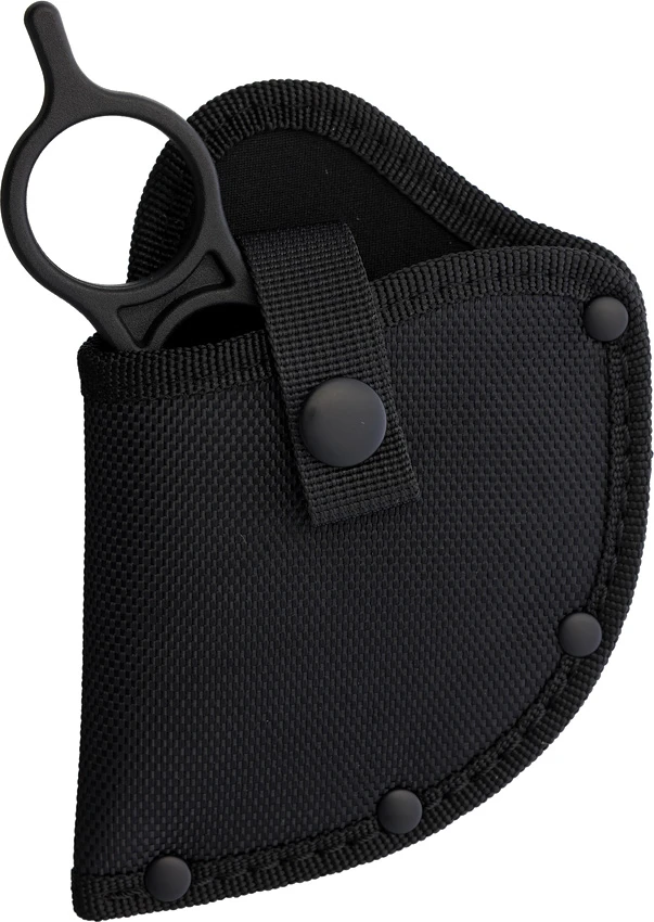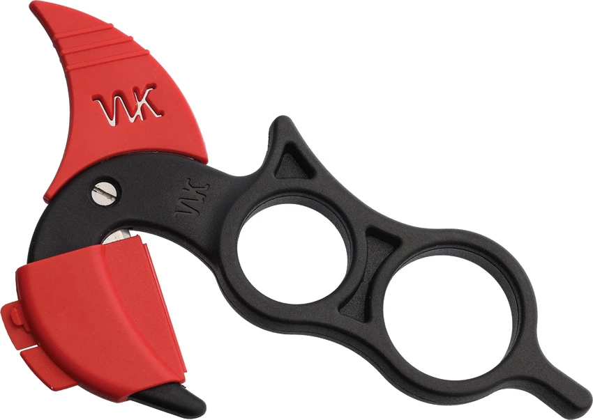 4.25″ (10.8cm) overall. Stainless blade. Black synthetic handle. Finger ring. One-piece replaceable blade with two edges. Comes with plastic blade guards. Black nylon belt sheath. Boxed.