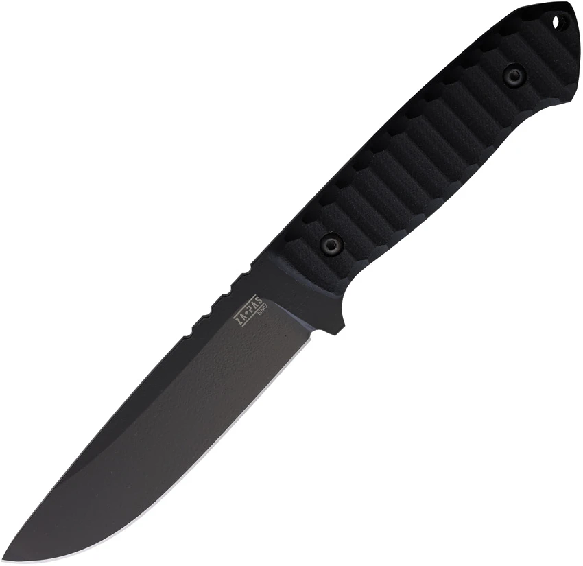 9.75″ (24.77cm) overall. 5″ (12.7cm) black Cerakote finish blade. Black sculpted G10 handle. Full tang. Lanyard hole. NMV 02 carbon tool steel blade. Black ABS MOLLE compatible belt sheath. Boxed.